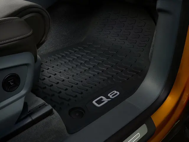 Audi Q8 All-Weather rubber floor mats are made from a pollutant free compound, and shaped perfectly to fit the floor of your Q8. These units are designed to protect vehicle carpet from snow, sand, mud, rain and slush, and feature positive retention clips and a nibbed back, ensuring that the Audi Q8 All-Weather mats stay in place. Set includes 2 front mats.