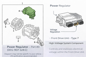 Aftermarket power regulators may have incorrect voltage characteristics, poor electrical tolerances, or unreliable internal components, which can lead to system faults or premature failure. The Genuine Audi 0EG907124G Power Regulator ensures factory-correct voltage control, proper integration with the front drive unit, and long-term reliability.